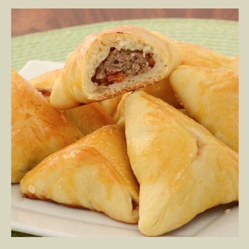 A tradicional esfiha de carne não pode faltar em sua festa ou em seu freezer. Ótima para pequenos lanches também.