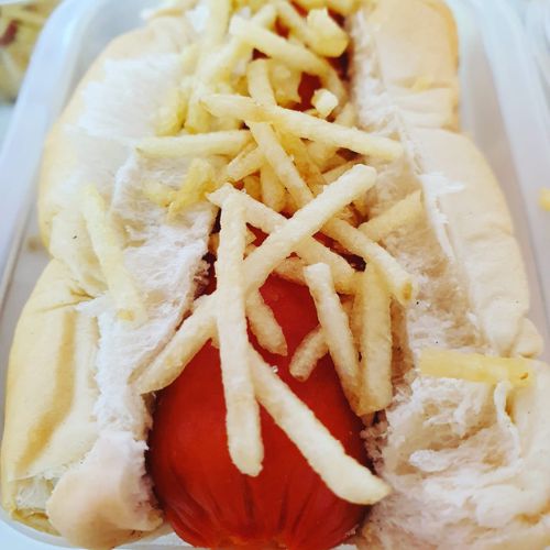 Ingredientes: pão de leite, salsicha Perdigão e batata palha.