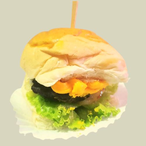 Ingredientes: pão de leite, hamburguer de carne moída, queijo mussarela, alface, maionese e ketchup.